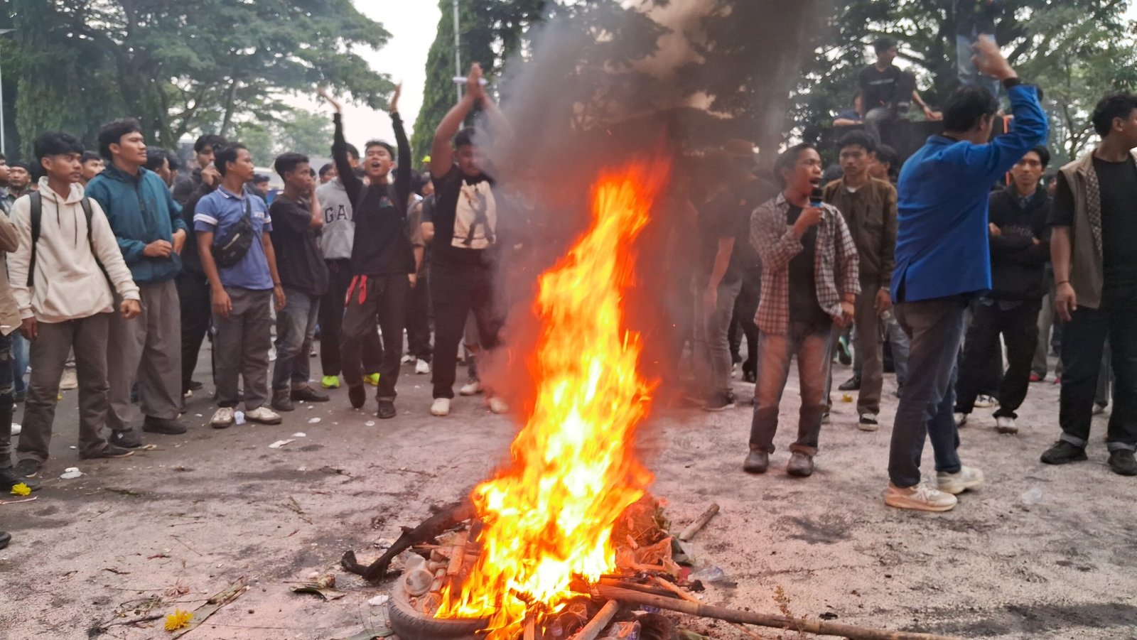 LEBAK, Ungkap Publik – Demonstrasi mahasiswa di depan gerbang Gedung Sekretariat Daerah (Setda) Kabupaten Lebak, Banten, diwarnai kericuhan, Selasa (2/12/2025).