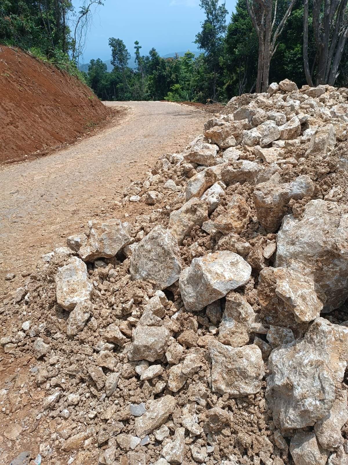 “Dibangun pake batu cadas putih, ya kalo musim hujan, jalan jadi licin, dan membahayakan pengendara, baik roda dua maupun roda empat, harus hati-hati” kata Harja.