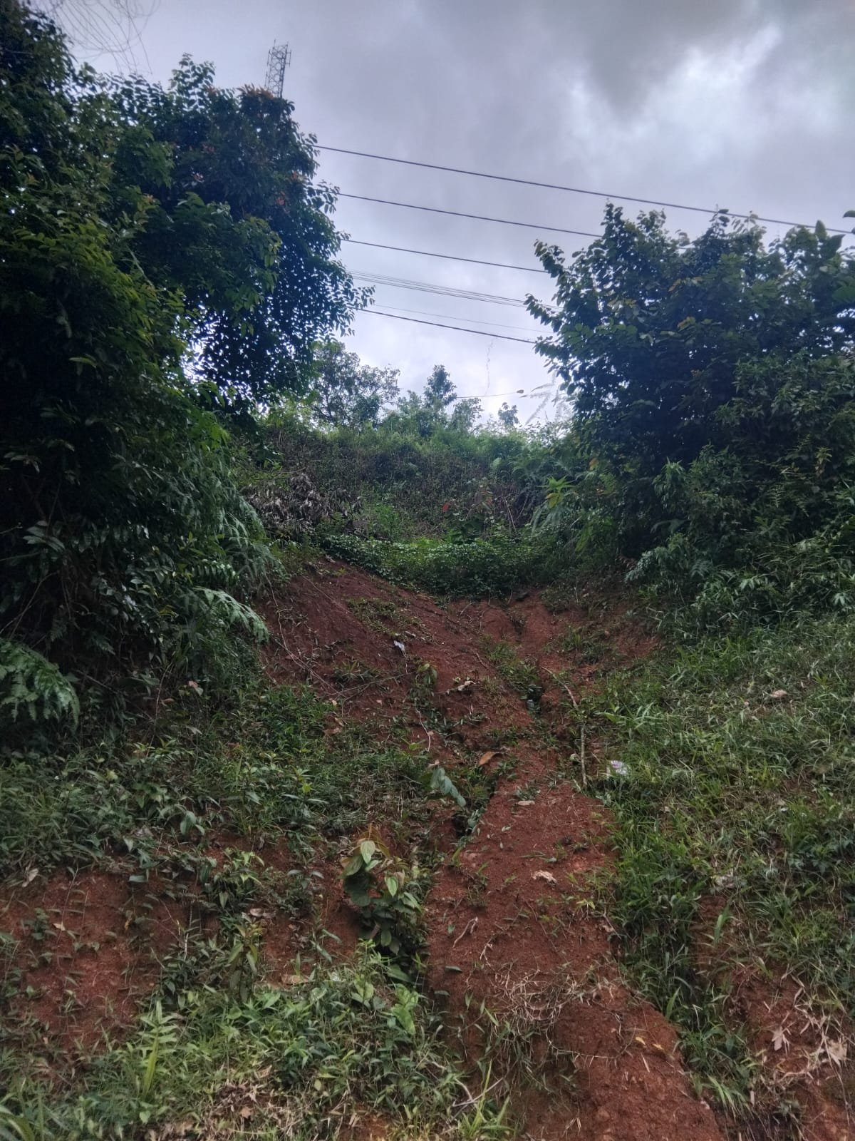 Peristiwa ini terjadi pada pekan kemarin. Tebing setinggi sekitar 10 meter di pinggir jalan tidak mampu menahan debit air hujan tinggi sehingga ambrol, menyebabkan sebagian badan jalan retak dan tergerus. Pengendara kendaraan roda empat harus ekstra hati-hati saat melintas.