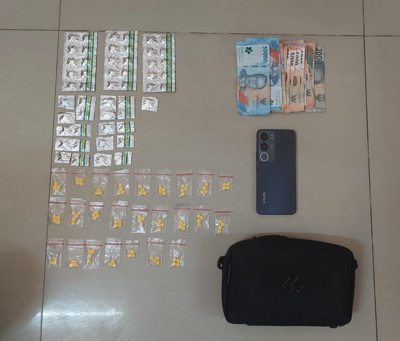 Dari hasil pengecekan, petugas menyita 51 butir Tramadol HCl, 95 butir Heximer, uang tunai Rp152.000 (diduga hasil penjualan), tas selempang, dan handphone Vivo warna biru dongker.